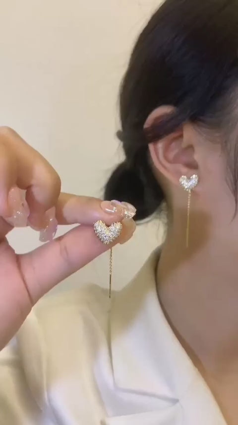 - 18k gold plated Rhinestone Heart design drop Earrings