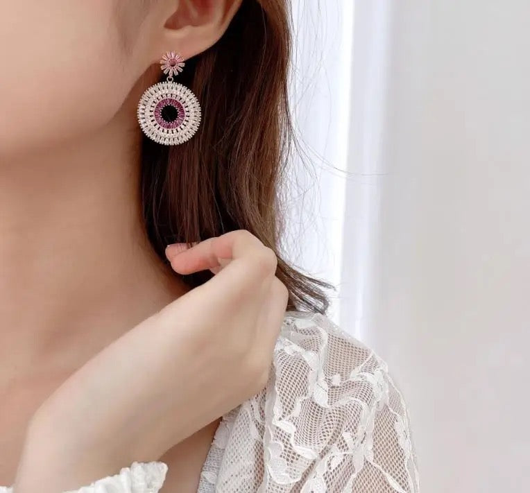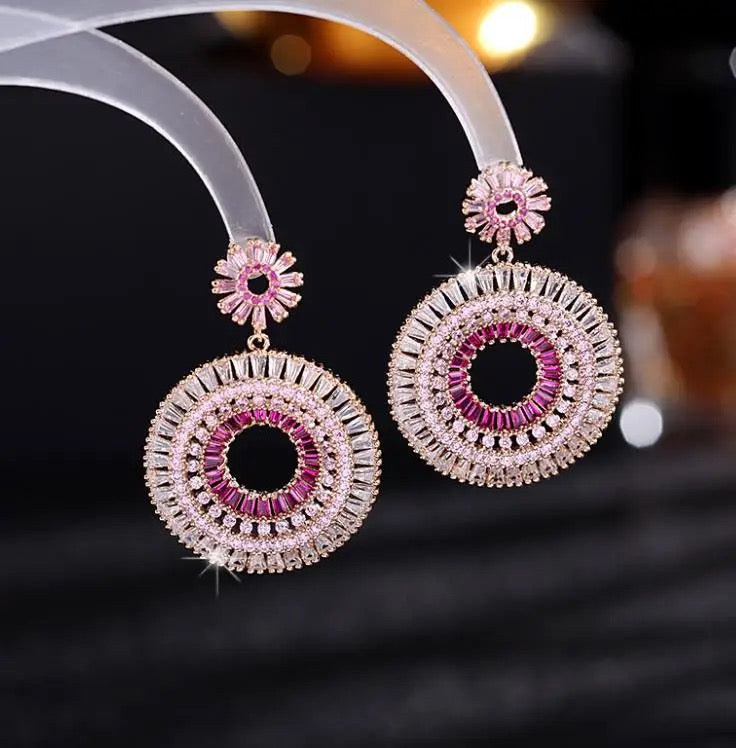 Premium Quality micro inlaid zircon colorful copper Earrings
