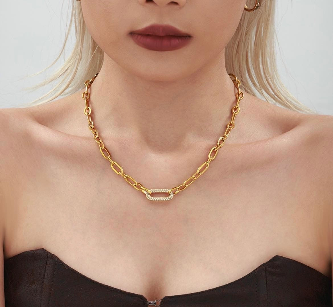 - Micro zircon inlaid 18k gold plated clavicle Jewelry set