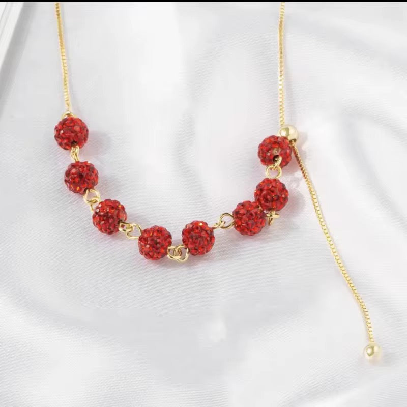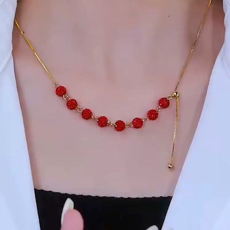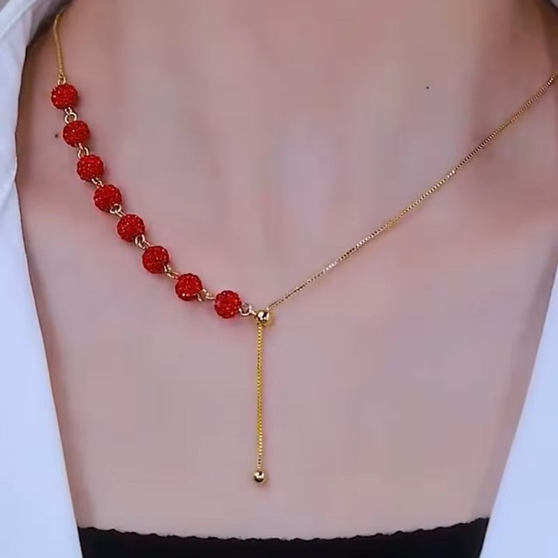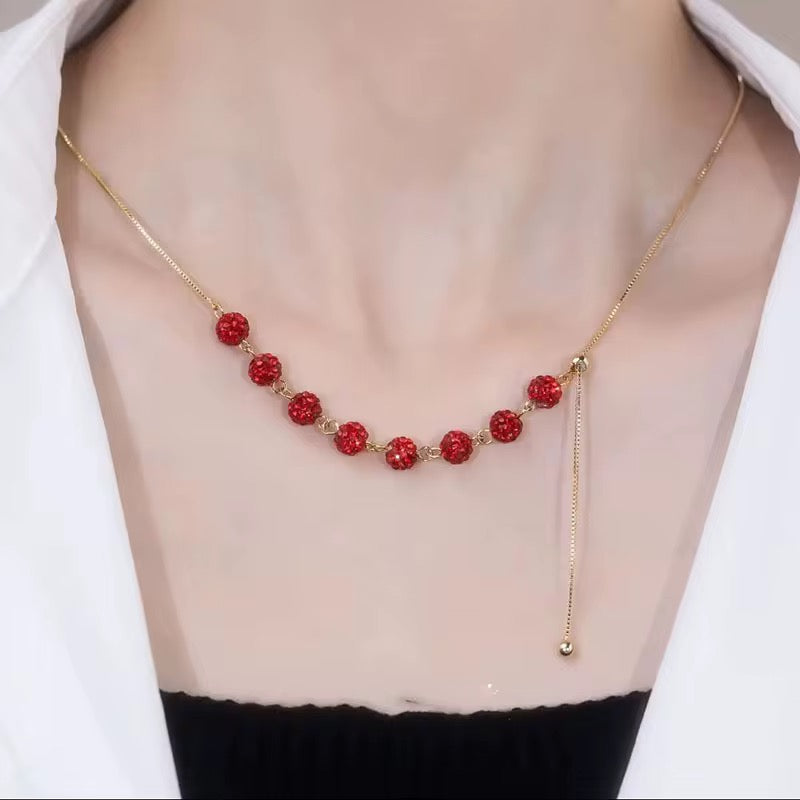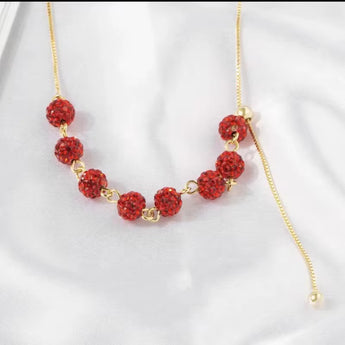 - 18k gold plated crystal red ball adjustable Luxury ladies Necklace
