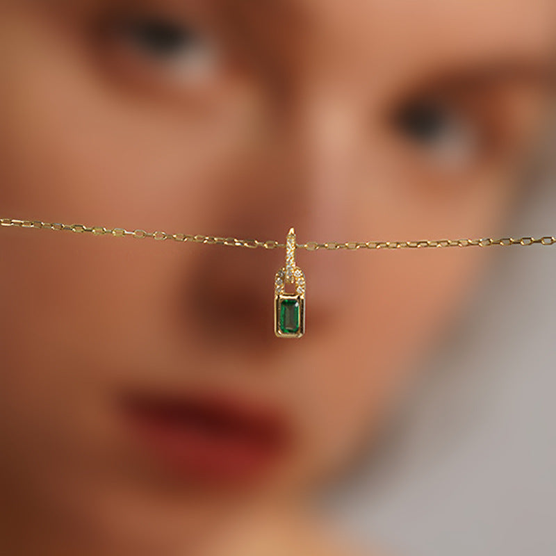 - 18k gold plated emerald pendant necklace is a non-tarnish, hypoallergenic piece that comes with a free gift box.