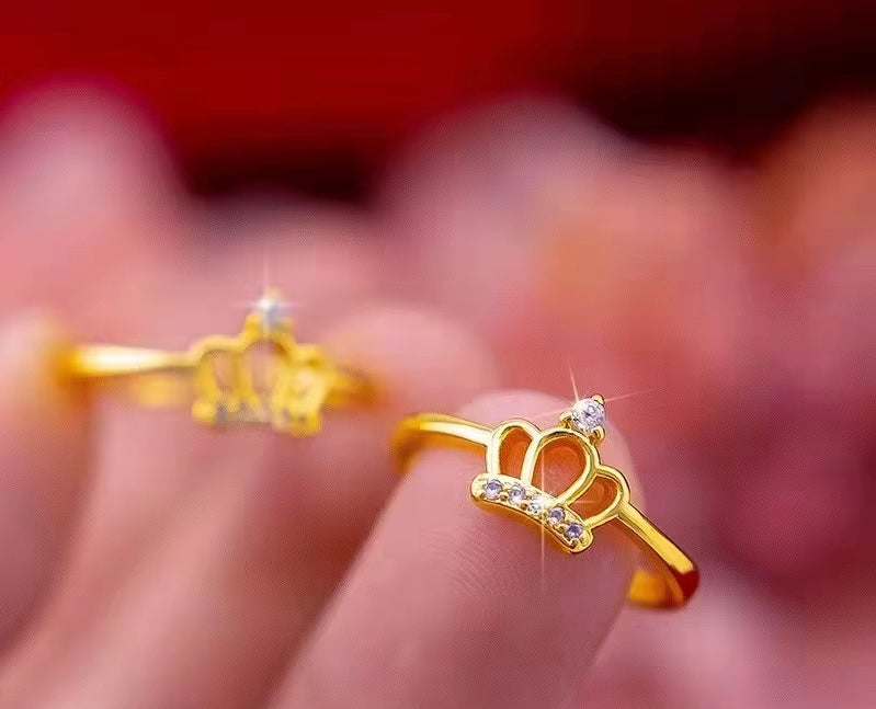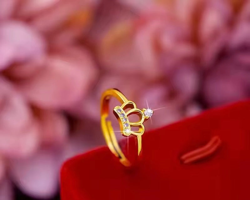 - 24k gold plated Adjustable size Ladies Crown design Ring