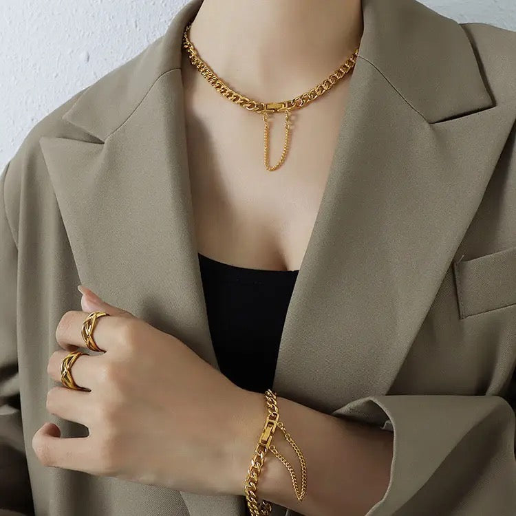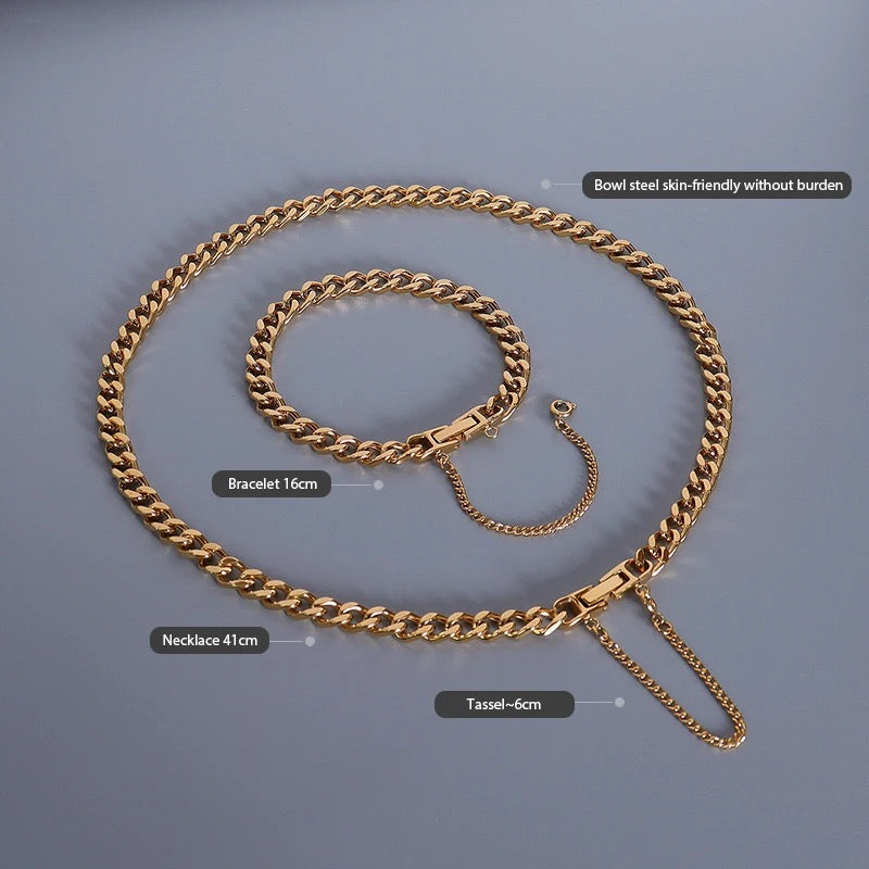 • Premium quality Non tarnish stainless steel 18k gold plated Ladies Necklace and Bracelet
