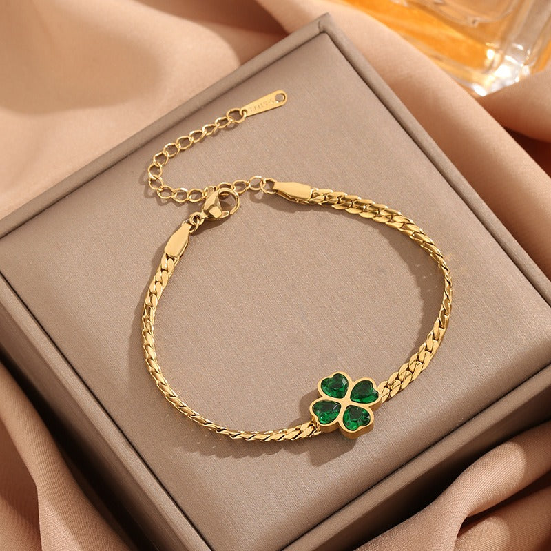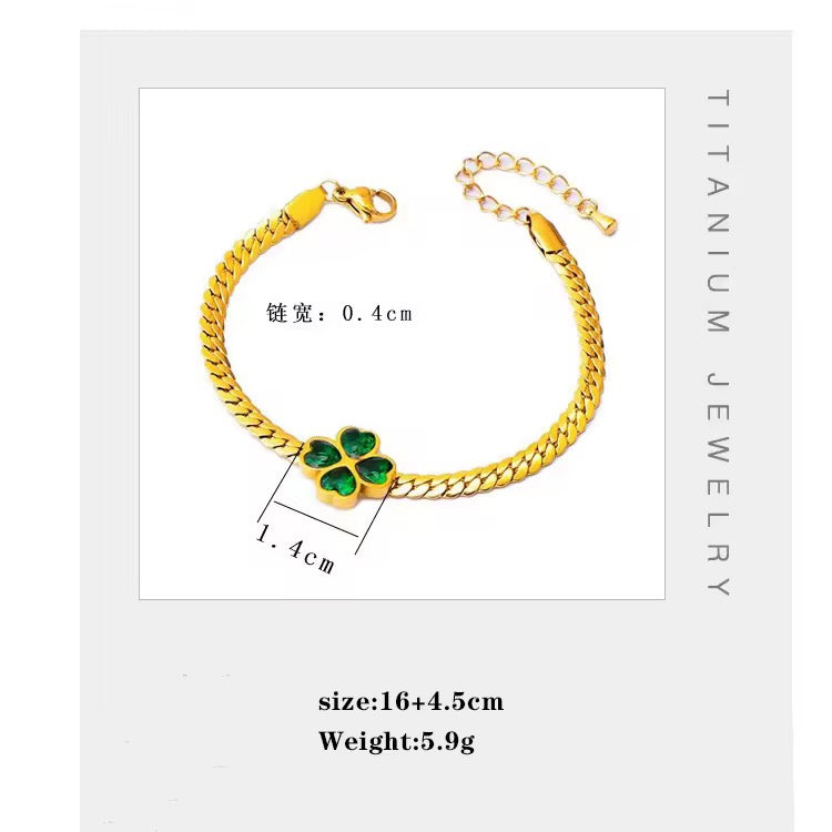 • 18k gold plated Titanium steel Ladies four clover green stone Bracelet
